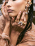 Todas nuestras piezas están elaboradas por artesanos colombianos en bronce con baño en oro de 24k. Peso aproximado: 7.1 g. Dimensiones: 2.5 cm (largo) x 2.5 cm (ancho).