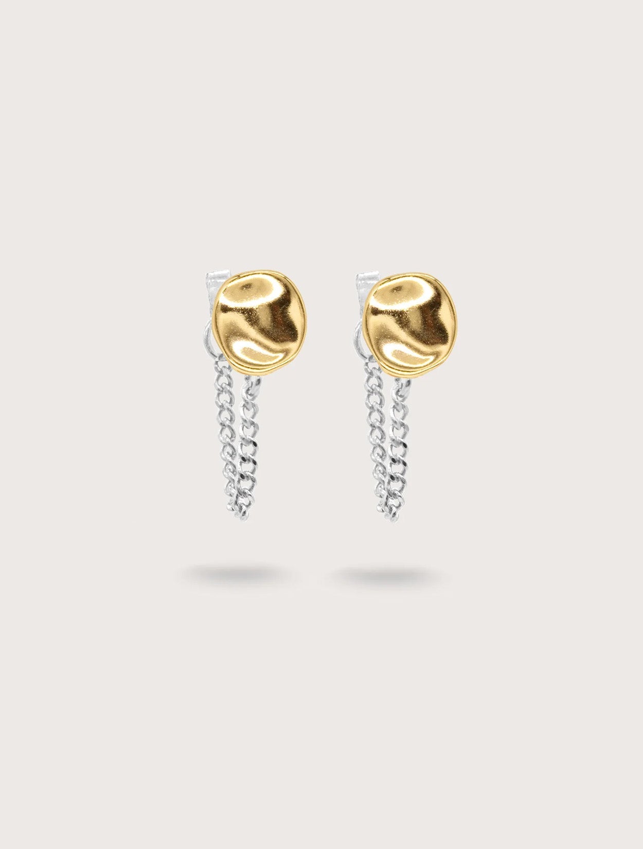 Aretes de mini gota y cadena elaborados en aleación de metales con baño de oro 22k y baño de plata.