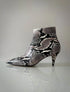 Botines de punta elaborados en cuero y tacón de 6.5 cms de alto.
