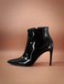 Botines de punta elaborados en cuero y tacón de 6.5 cms de alto.