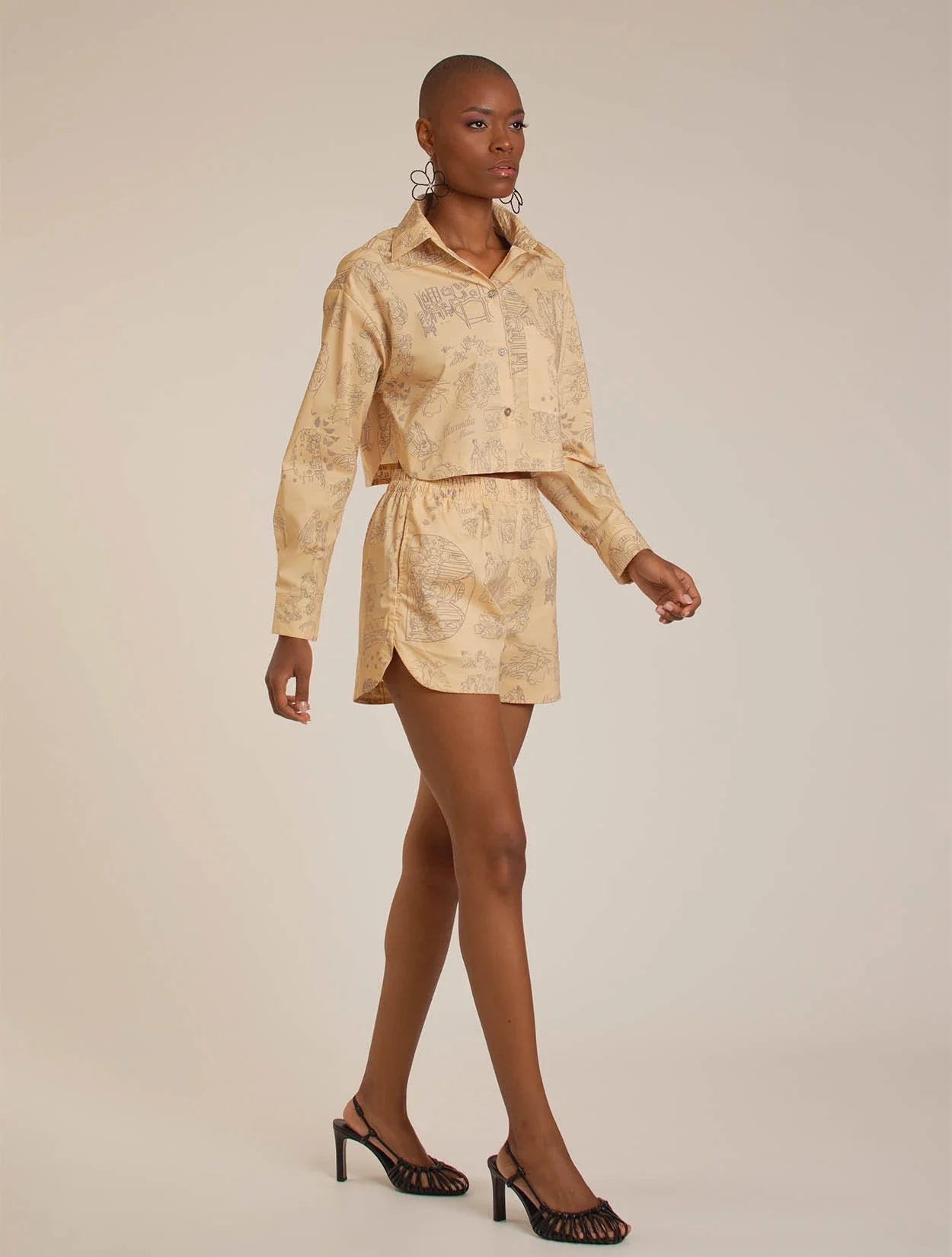 Camisa de silueta relajada con corte cropped, cuello clásico y manga larga. Cierre frontal con botones y bolsillo de parche en el pecho. Diseño exclusivo LIFE CYCLE de Macondia. Ideal para soñar despierta en días de verano, escapadas casuales o momentos que merecen sentirse inolvidables.