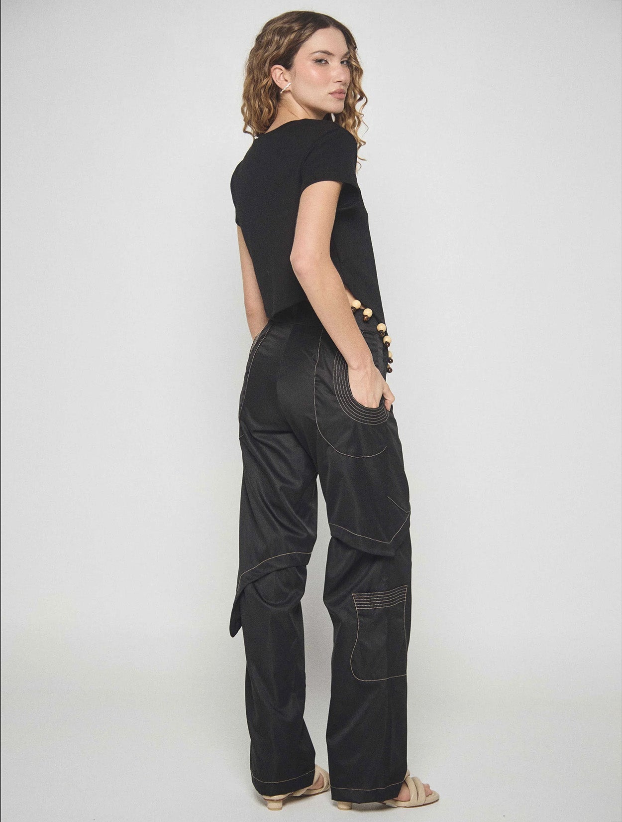 Está construido en 100% algodón premium, una tela fresca, suave al tacto y ligeramente gruesa para garantizar durabilidad, estructura y una caída impecable. Su corte en “V” estiliza visualmente la cintura y alarga la silueta, convirtiéndola en una prenda favorecedora para cualquier tipo de cuerpo.