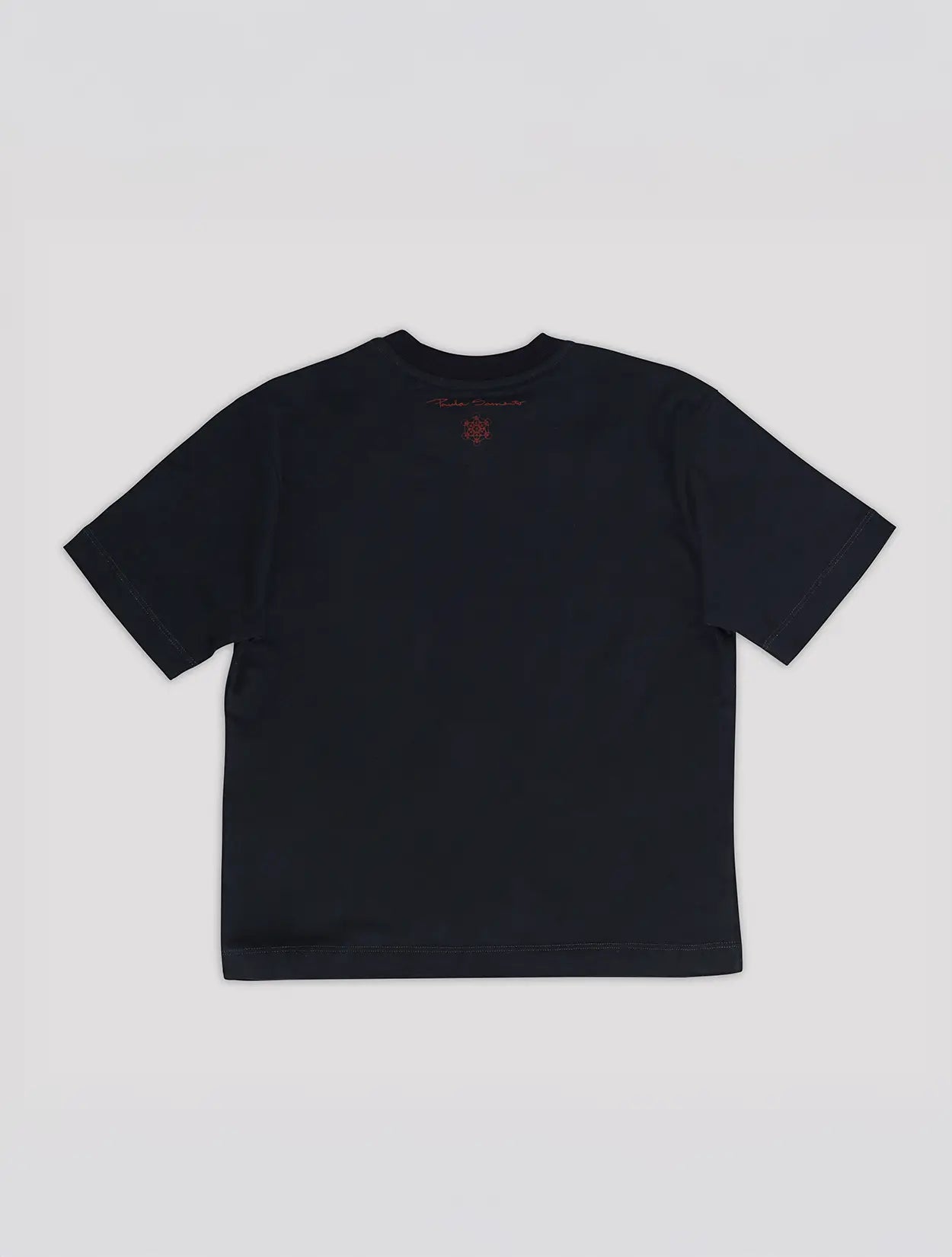 Camiseta de Algodón 100% con estampado en letras rojas.