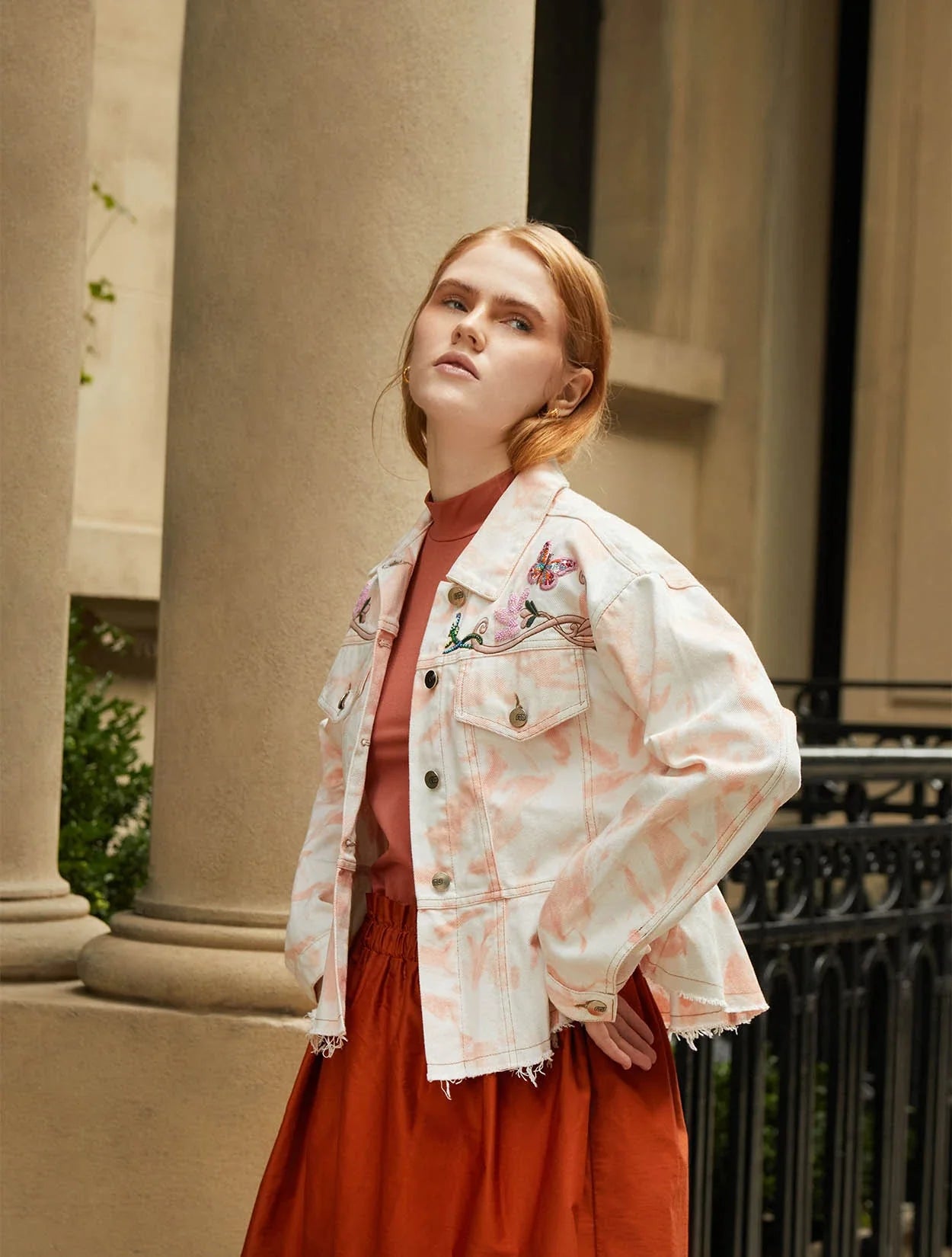 Una obra de arte en denim, bordada a mano por nuestros artesanas.