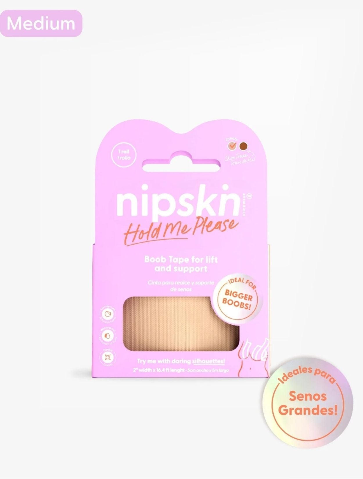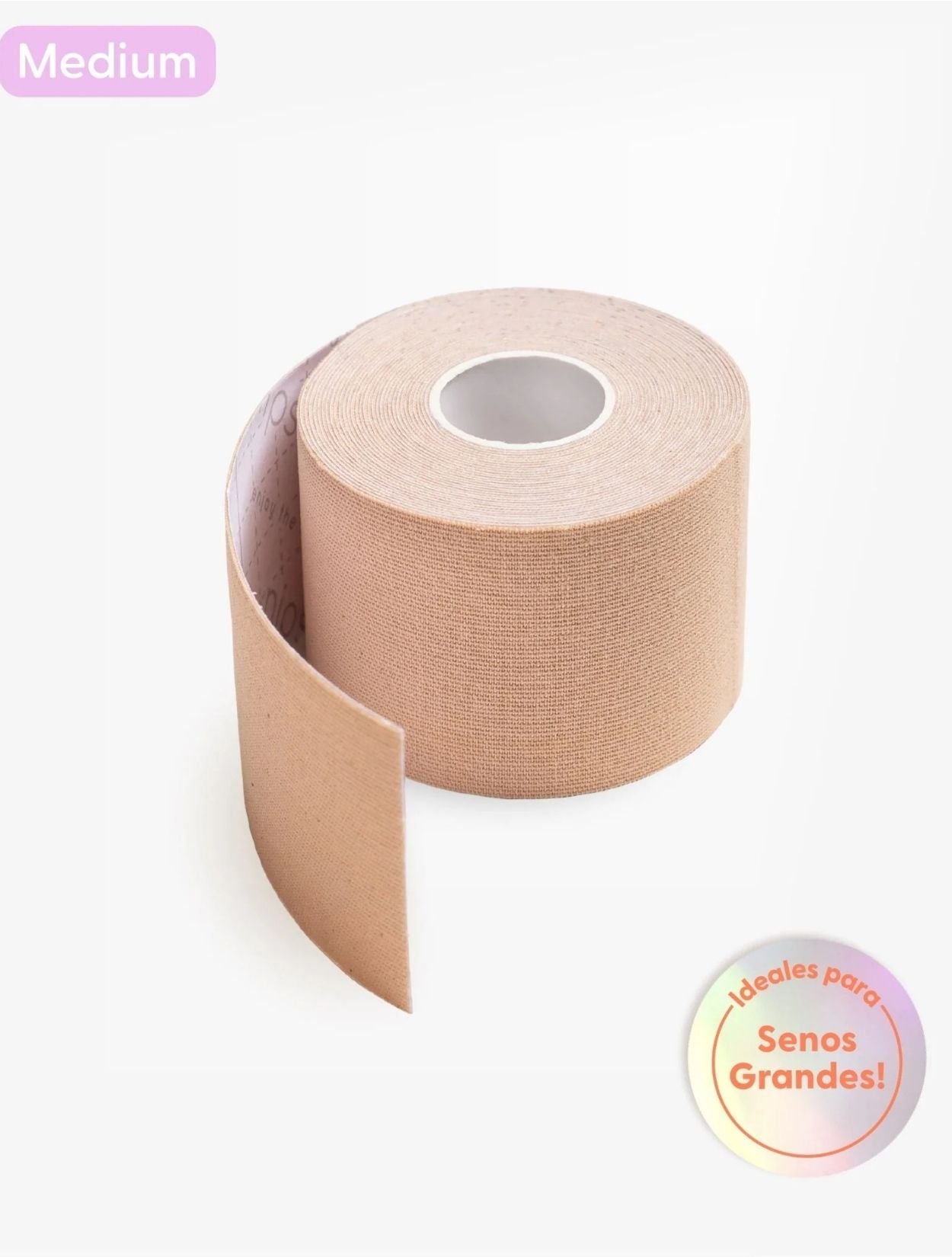 Tamaño Mediano: 1 rollo- 5 cm de ancho x 5 metro de largo. Alcanza para 5-10 usos aproximadamente. Esto dependerá de la cantidad que necesites según el tamaño de tus senos. Material: 95% algodón, 5% spandex. SIN látex