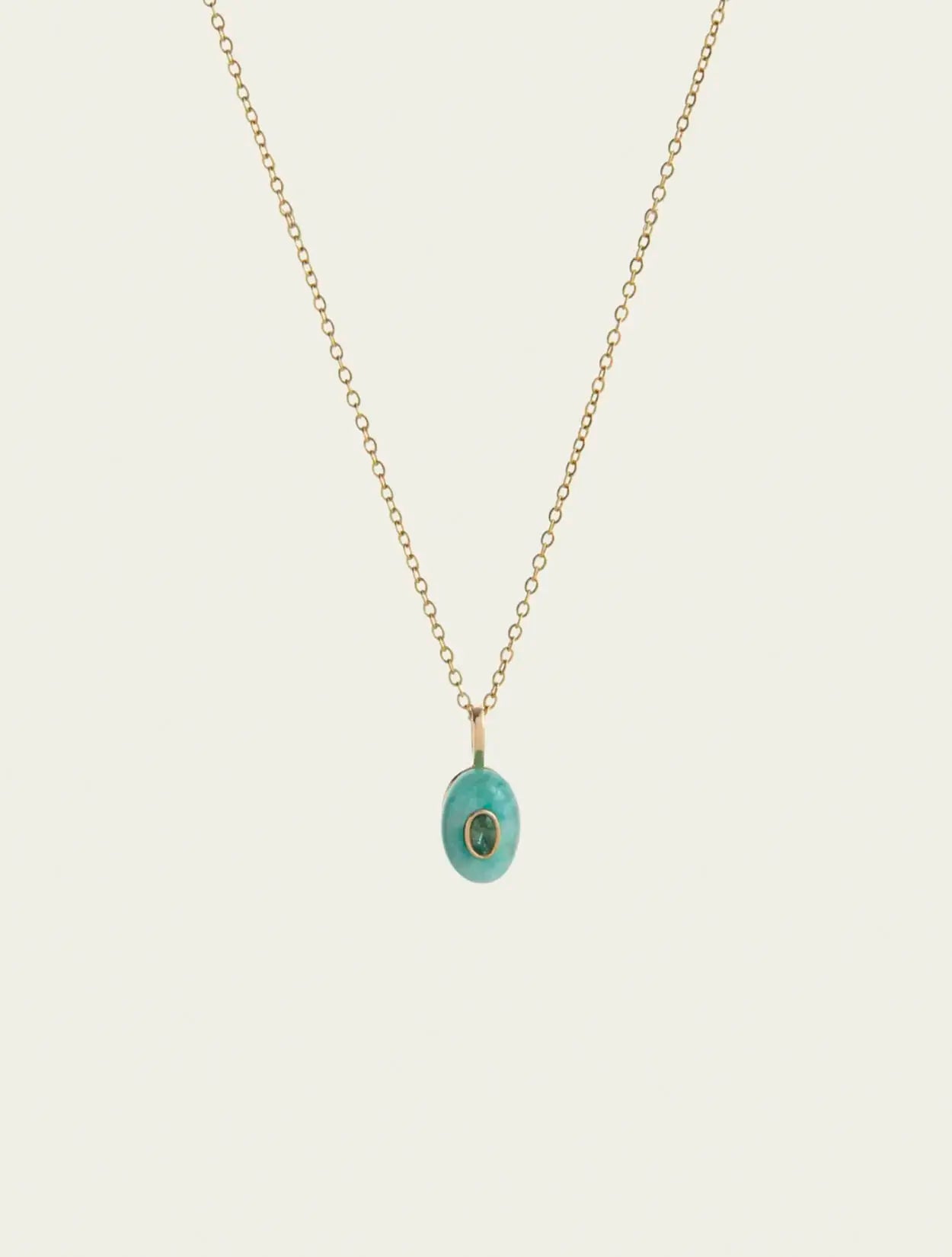 El acabado en oro de 18K complementa a la perfección los tonos naturales de la amazonita, creando una pieza fresca, moderna y muy versátil, ideal para realzar looks diarios o acompañar capas de collares.