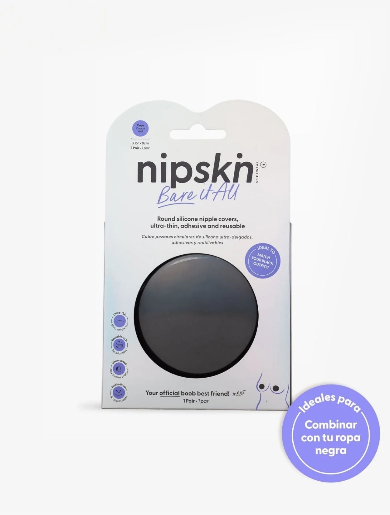 Cubre Pezón de Silicona Negro, ultra-delgados, adhesivos y reutilizables. ¡No se notan a través de tu ropa!