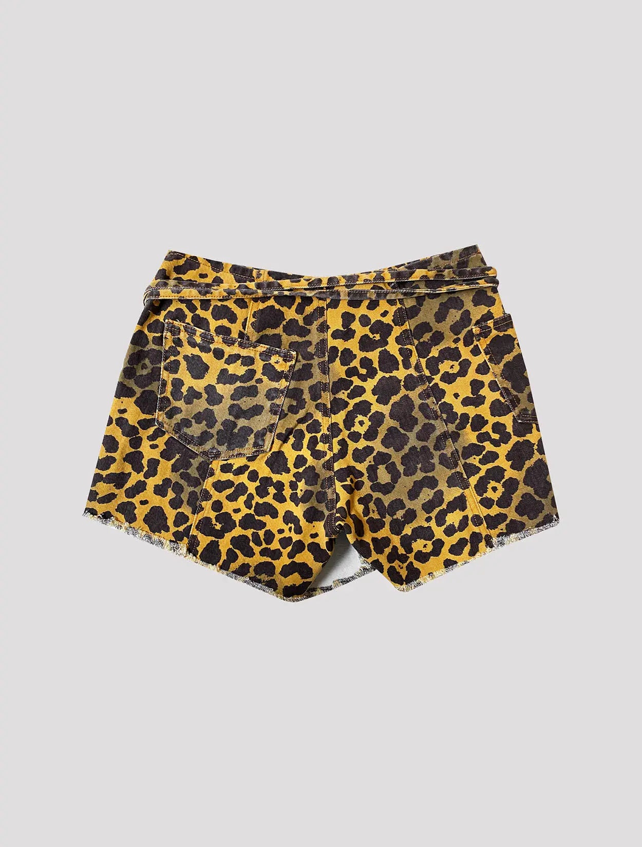 Falda-Short en Denim 100% Algodón con Estampación Textil de Animal Print.