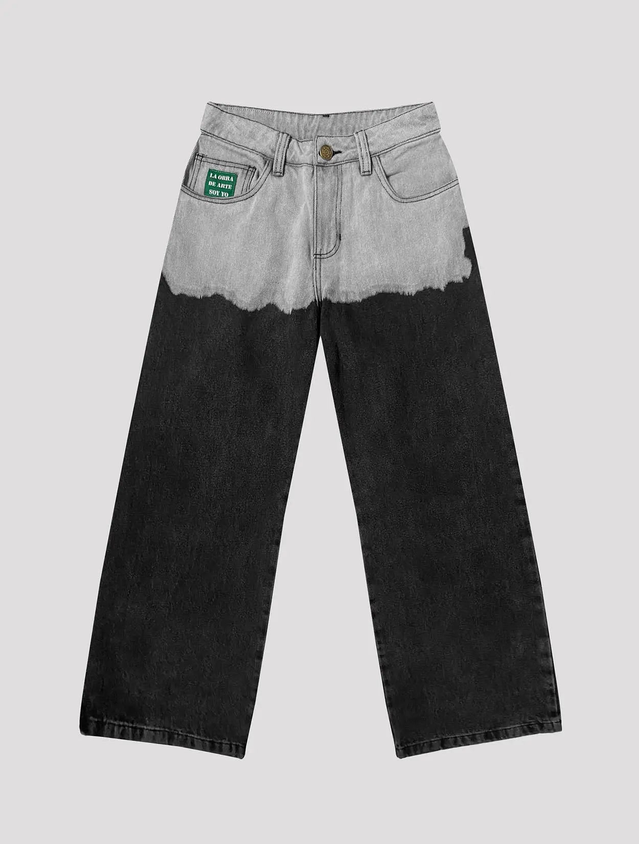 Jean campana hecho en denim 100% algodón con lavado en degrade hecho de manera artesanal.