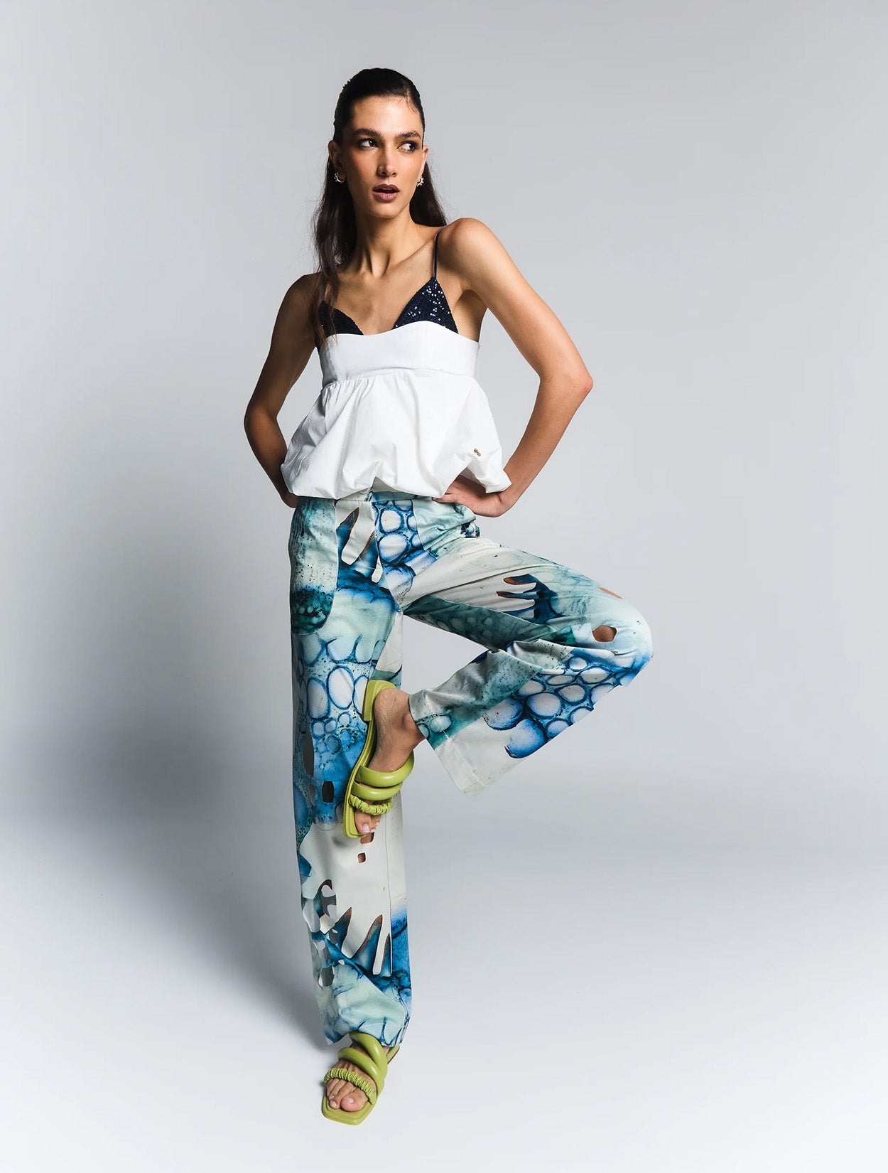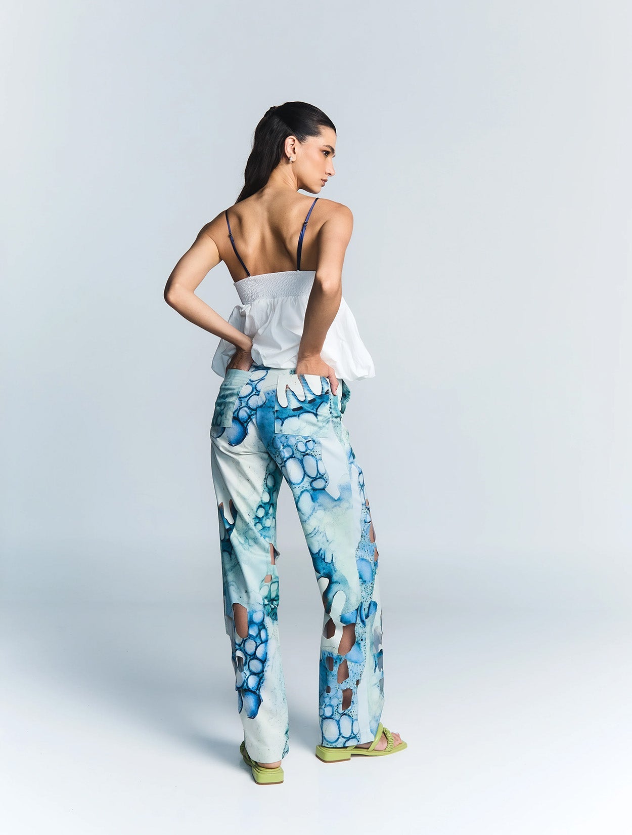 El Pantalón Fuscus presenta nuestro estampado favorito de la colección, combinado con nuestro corte más vendido. De tiro alto y corte semi ancho, está confeccionado en nuestra tela clásica, que garantiza el mejor ajuste y comodidad. Los cortes láser en el bajo añaden un toque audaz y moderno, convirtiéndolo en la pieza perfecta para elevar cualquier look. Usalo con tennis y una t-shirt para un look mas casual o combínalo con nuestro top ramphos y accesorios para un look más nocturno.