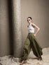 El Pantalón Lauren es una pieza statement que redefine el volumen con una silueta escultural; presenta un tiro alto y una pierna extremadamente ancha. El diseño con frunces crea un sofisticado efecto globo en el bajo, garantizando un look dramático y vanguardista.