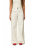 Pantalón de corte ancho y recto con un estilo clásico. Su diseño resalta por las costuras un contraste en color rojo o rosa pálido, que definen los bordes y los detalles.