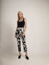 Pantalón de corte recto ajustado a la altura del tobillo, con estampado abstracto de líneas fluidas en blanco y negro. Cintura ajustada y estilo moderno, perfecta para mostrar el calzado.