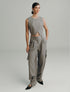 Fit: Amplio desde la cadera, con caída estructurada. La silueta se define en la cintura gracias a la pretina ancha y el tiro alto.