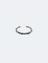 Una pulsera que fusiona la rigidez de un diseño moderno con la delicadeza de una cadena. Esta joya presenta una pulsera semirrígida y abierta (tipo brazalete), conectada por una cadena fina a un anillo doble o eslabones circulares para un efecto que envuelve la muñeca y la mano.