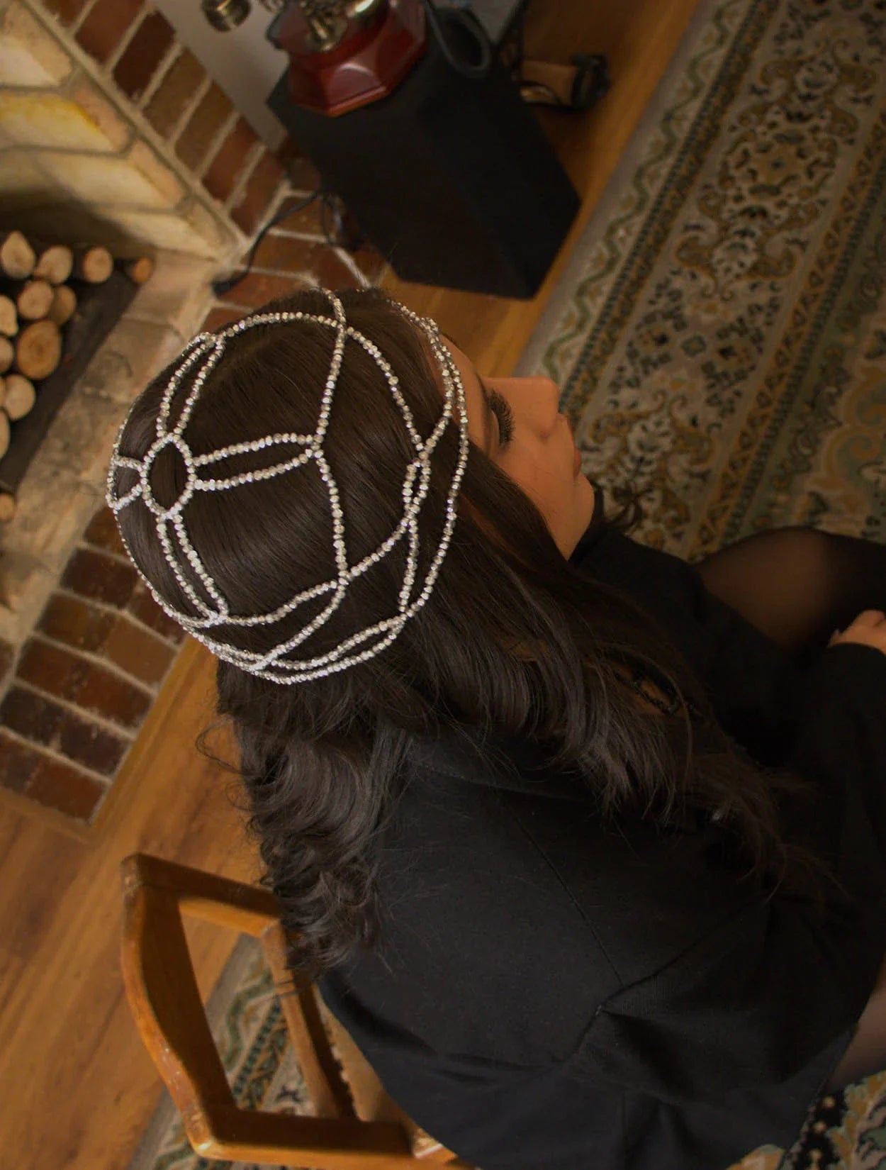 Destaca con esta Crystal Hat tipo beaded hair net, tejida a mano con pedrería plateada que captura y refleja la luz, aportando un toque bohemio, místico y sofisticado a cualquier look. Su diseño delicado y ligero se ajusta cómodamente sobre la frente, convirtiéndose en el accesorio perfecto para realzar tu peinado con estilo y originalidad.