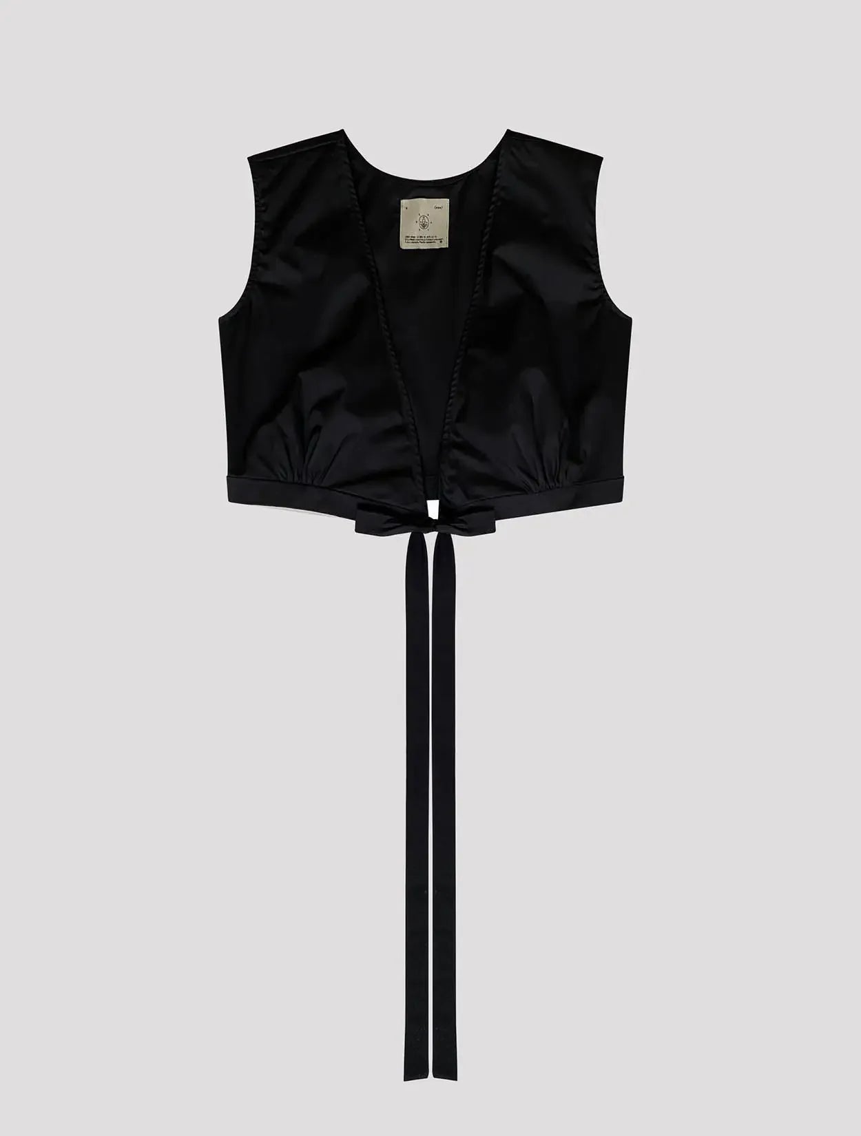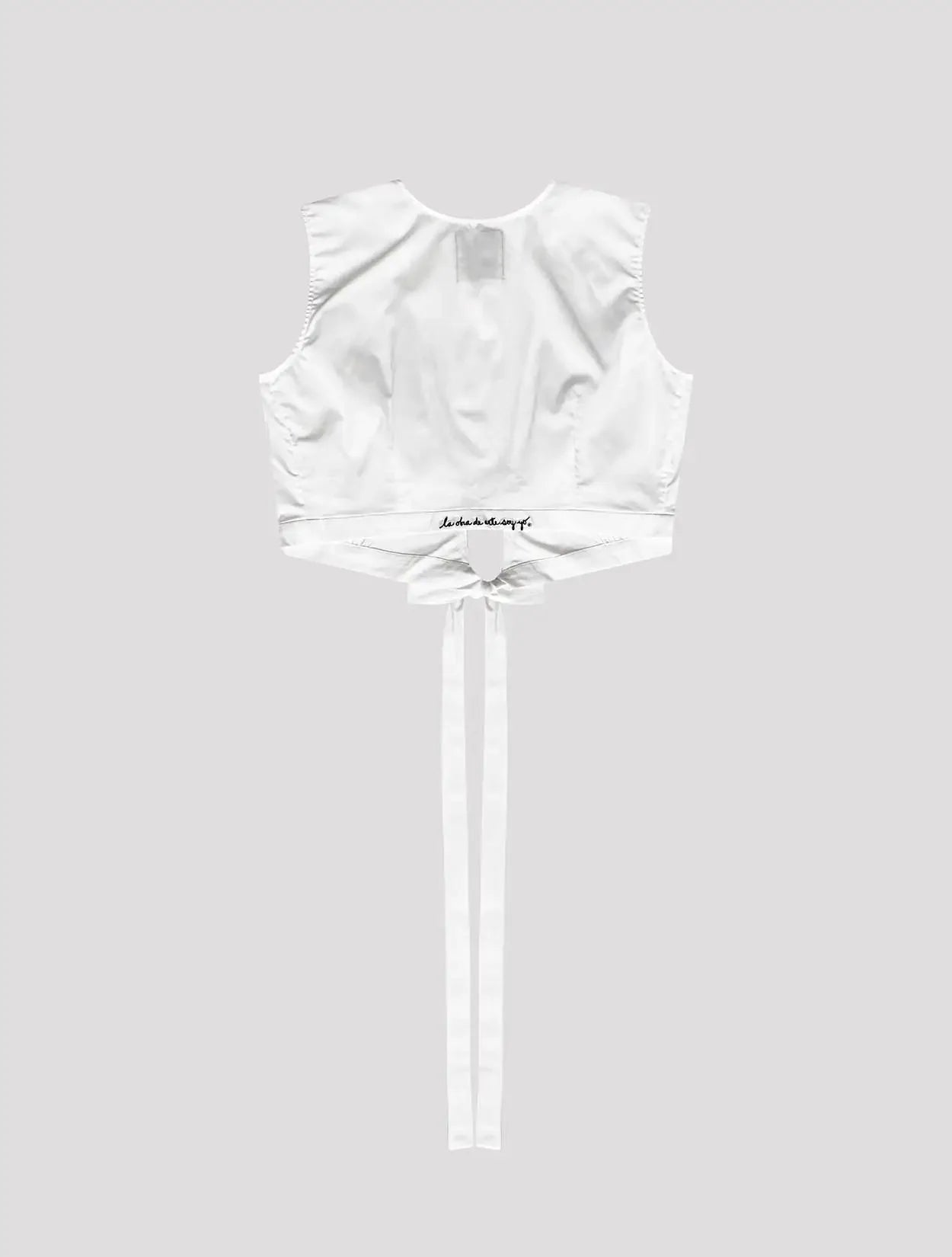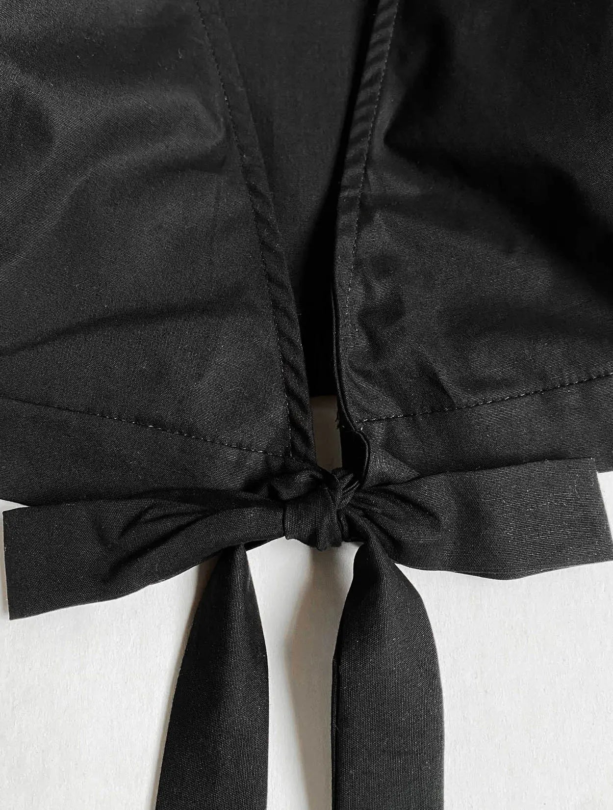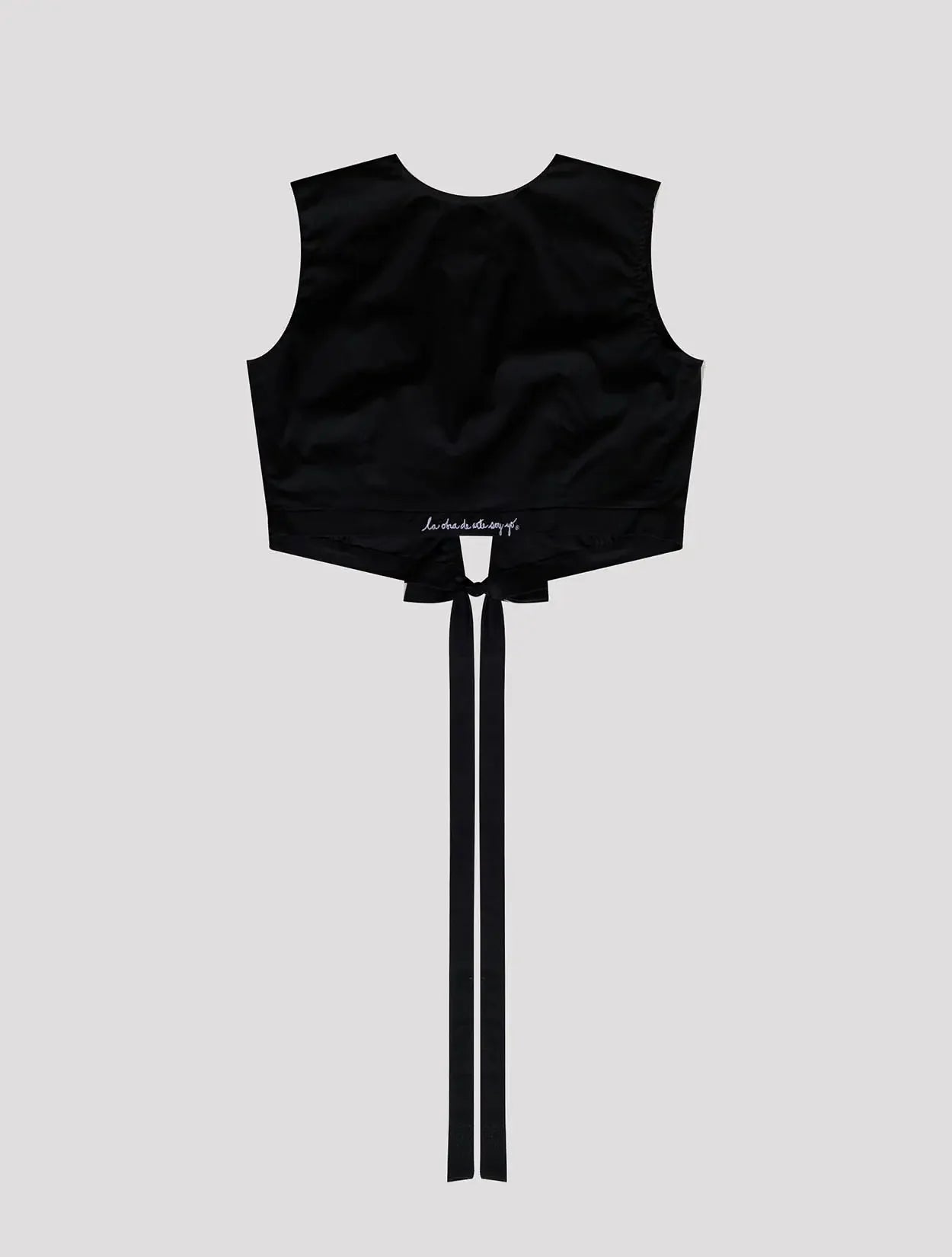 Top de amarre cruzado color negro en popelina, con bordado en espalda de LaObraDeArteSoyYo.