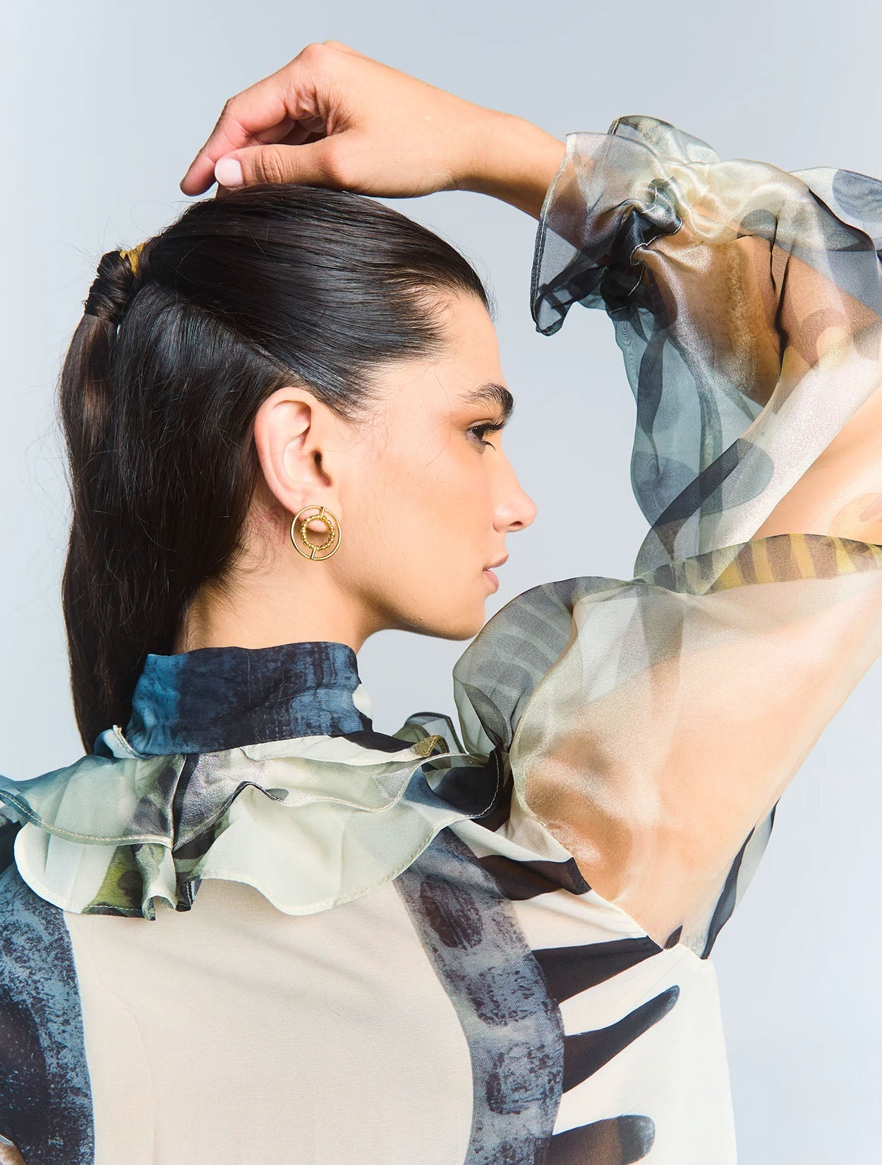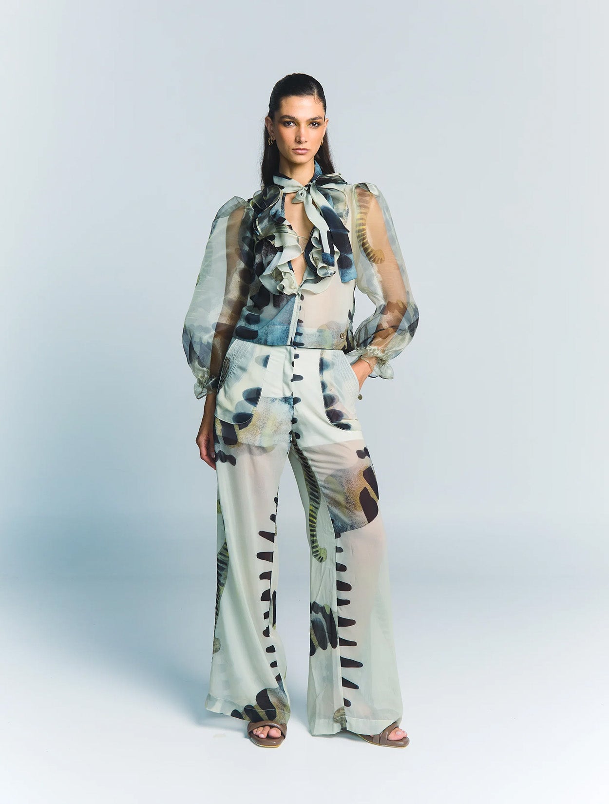 Semitranslúcida y elegante que elevará cualquier look. Con mangas translúcidas y voluminosas, aporta un toque de drama y sofisticación. Su estampado, a la vez clásico y moderno, hará que tu estilo destaque. Confeccionado en un tejido suave y ligero, es perfecto para un estilo chic y cómodo. Usalo con el Komodo pant para ese look total Zierra Leona.