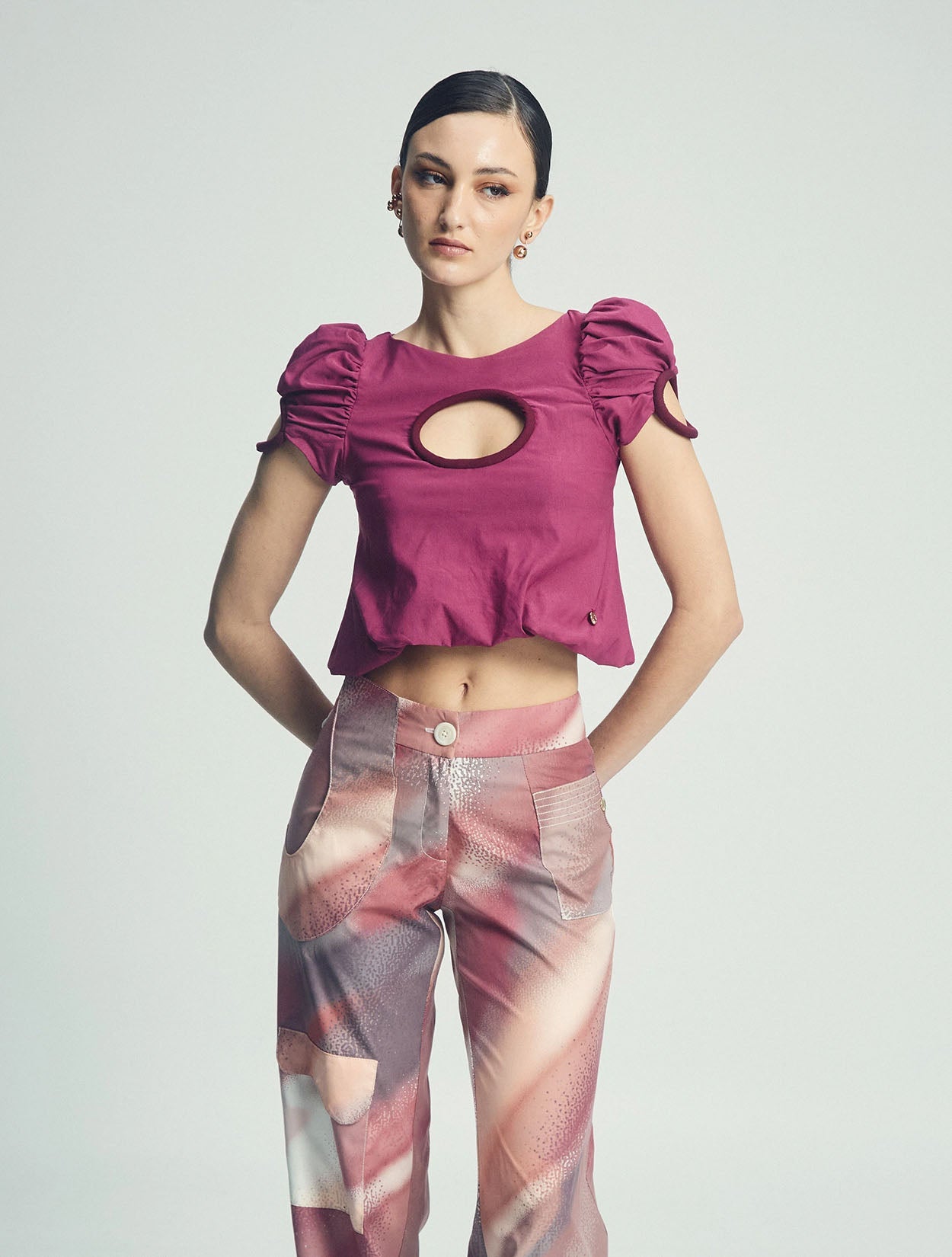 Confeccionado en una tela de rayón con un poco de stretch, se ajusta suavemente al cuerpo, siendo cómodo, fresco y muy versátil. Su silueta baggy le aporta movimiento y ligereza, logrando el equilibrio perfecto entre frescura y sofisticación.