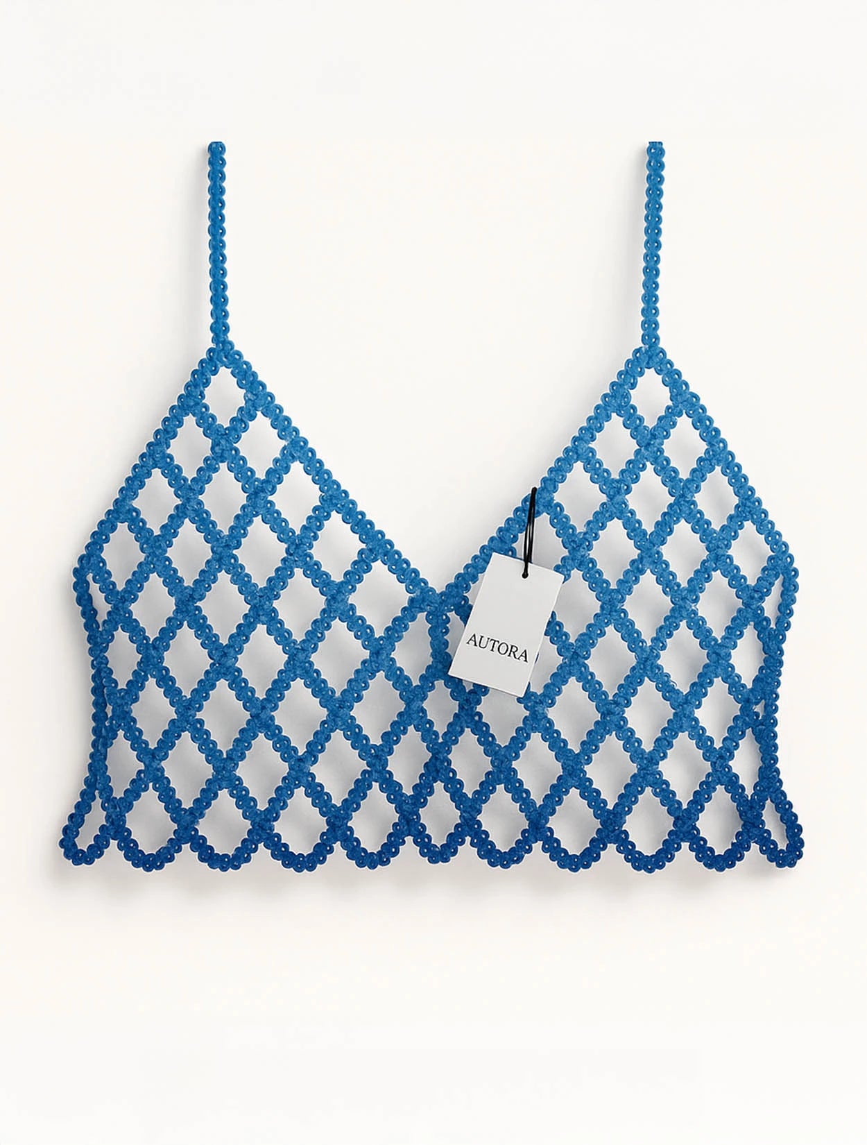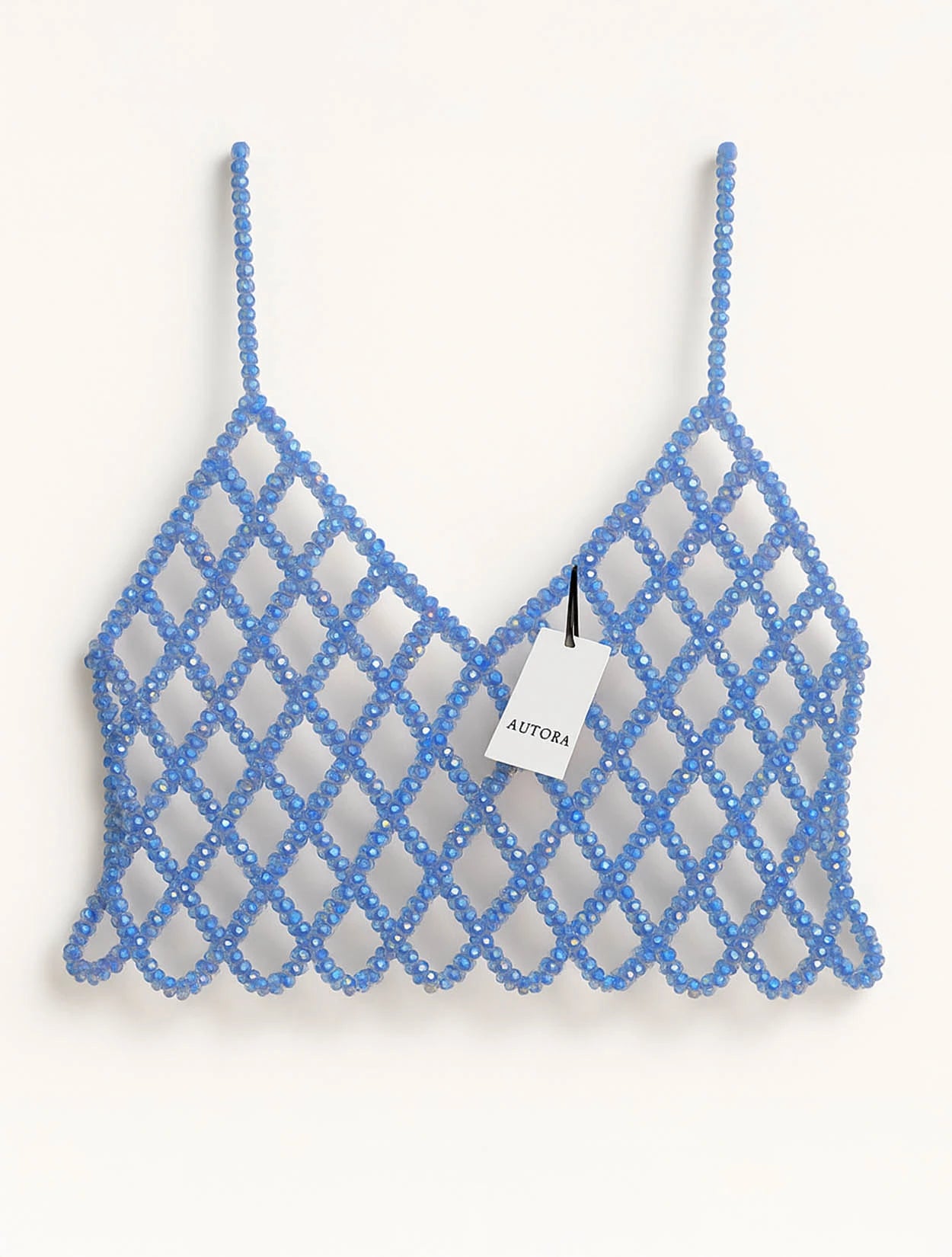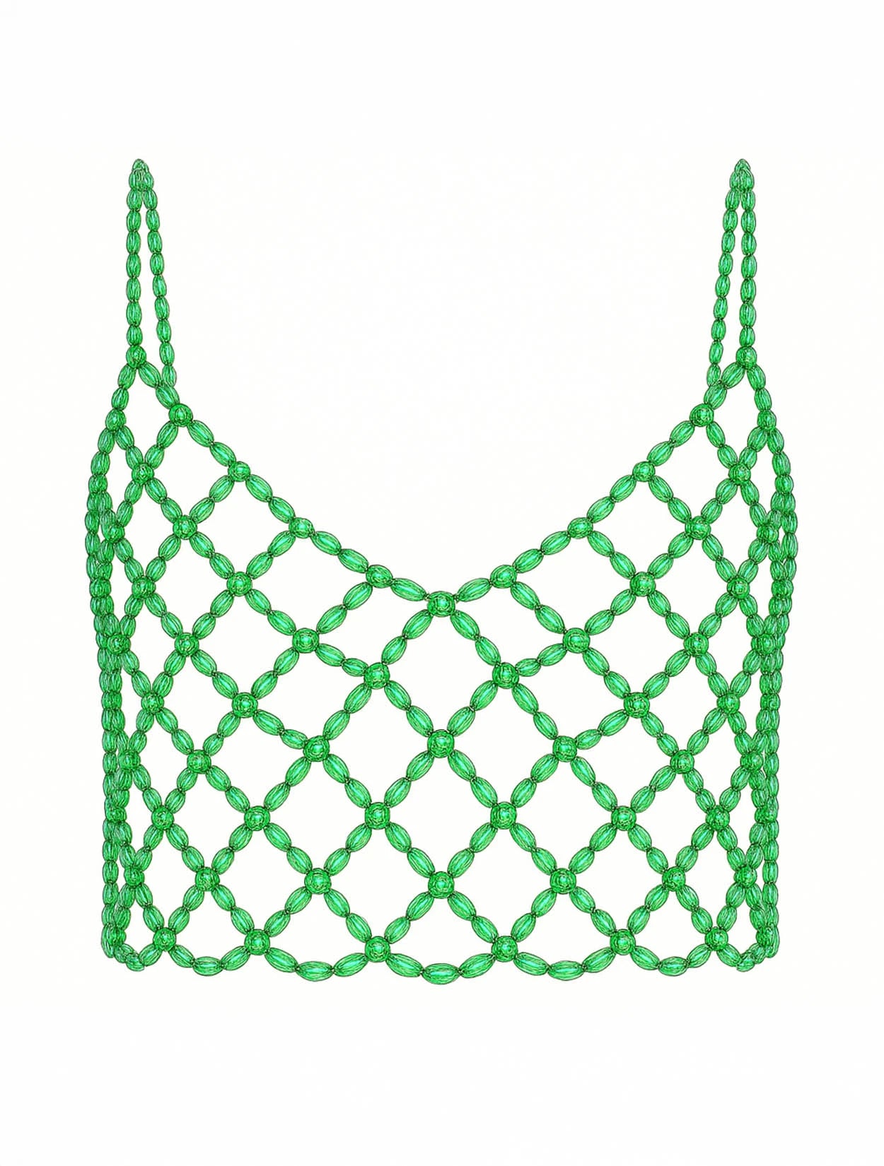 Un diseño que roba miradas. Este top tejido a mano con pedrería brillante, crea un efecto de malla que atrapa la luz y resalta tu estilo. Su silueta versátil de talla única se adapta a diferentes looks: úsalo sobre camisetas, camisas o buzos para un toque urbano con brillo, o combínalo con prendas minimalistas para un contraste sofisticado.