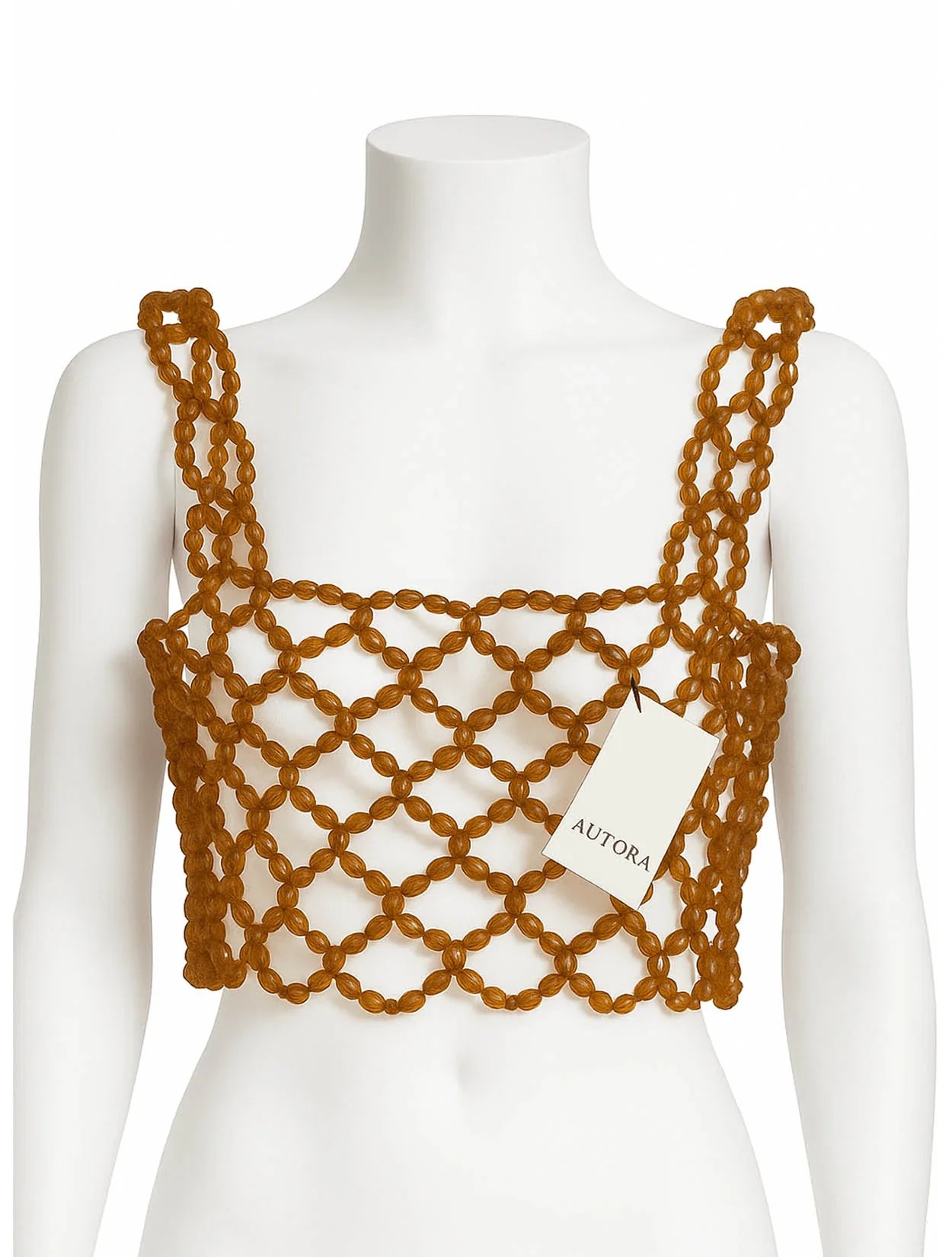 Eleva tu estilo con el Top recto Murano ámbar, una creación exclusiva de Autora, disponible en Casa Precis. Tejido a mano con cuentas de cristal tono ámbar que capturan y reflejan la luz con un brillo cautivador, esta pieza joya envuelve el torso con un patrón recto y depurado que realza la silueta.