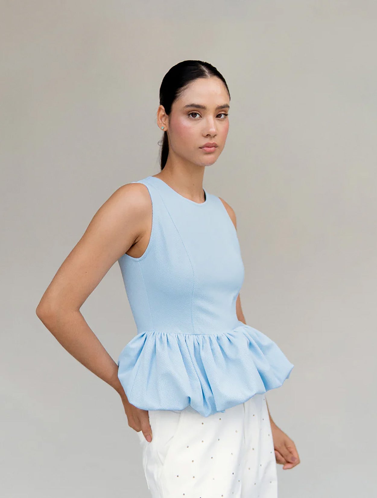 El Top Truffle ha sido el preferido de esta temporada, y ahora llega en colores básicos para elevar tus outfits. Su silueta es perfecta, con corte en la cintura, peplum globo, y cremallera en la espalda.