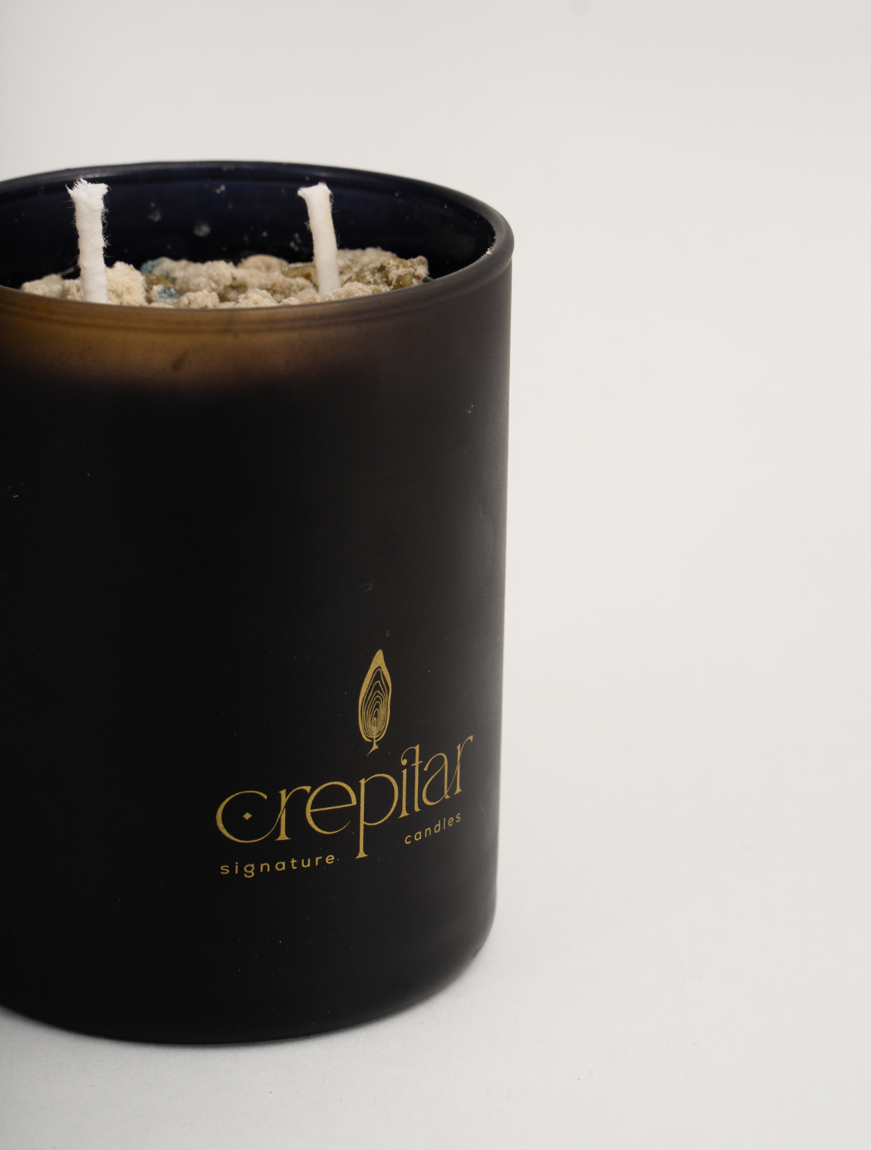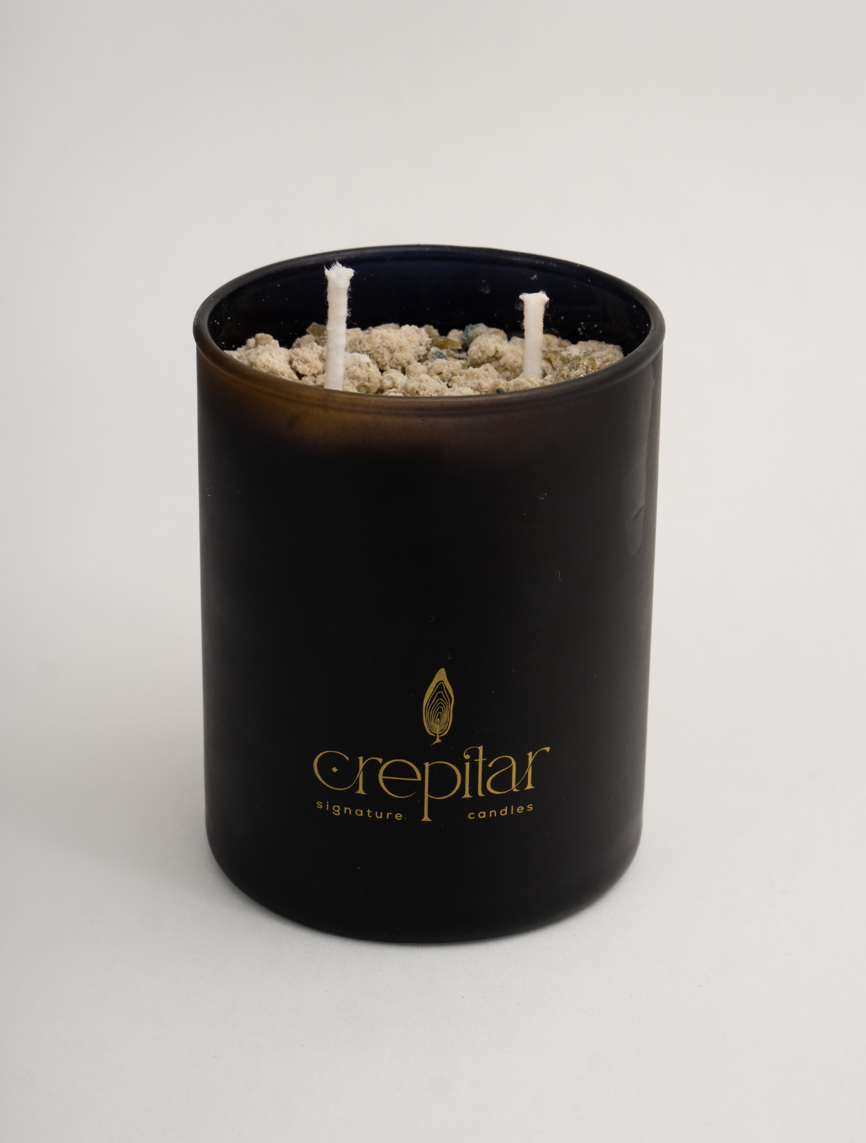 Fresca, con espuma que suena cuando la enciendes. Perfecta para rituales de relajación y espacios altamente frecuentados para balancear el aroma y la armonía.