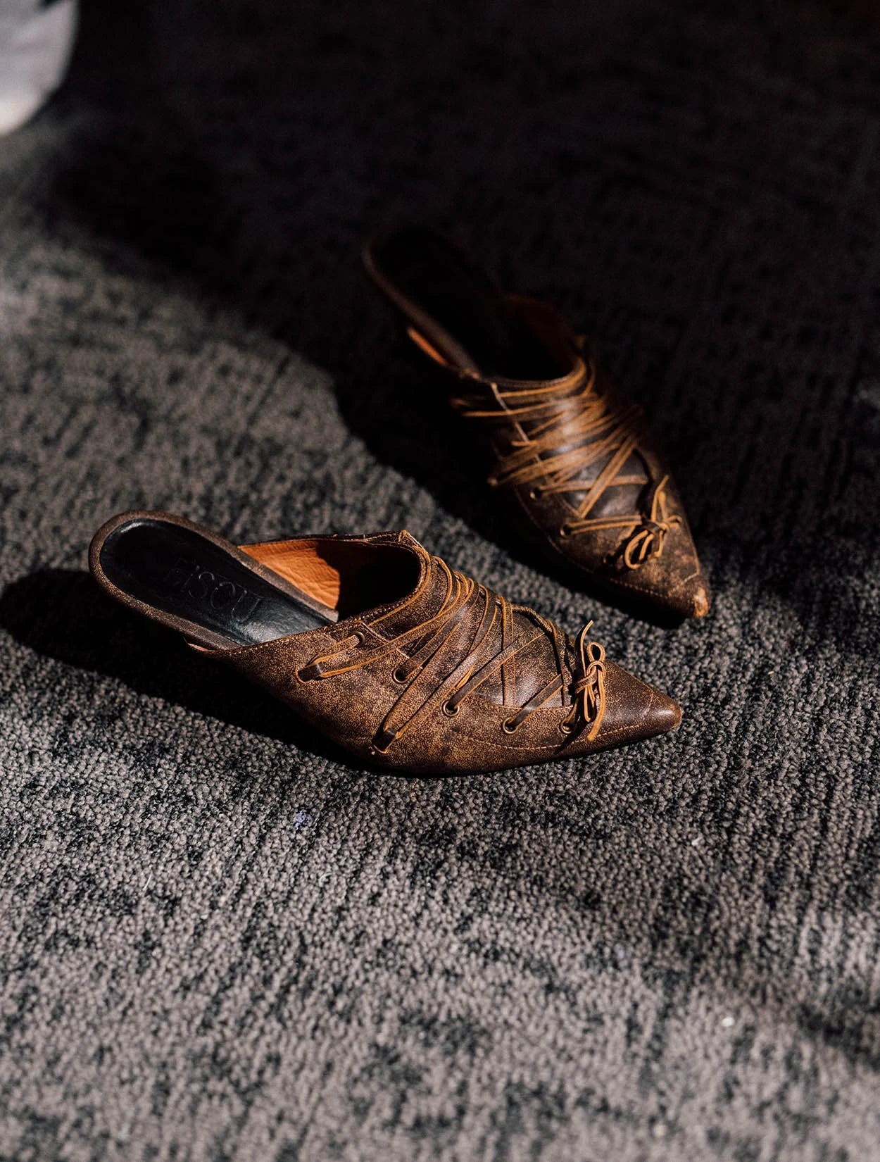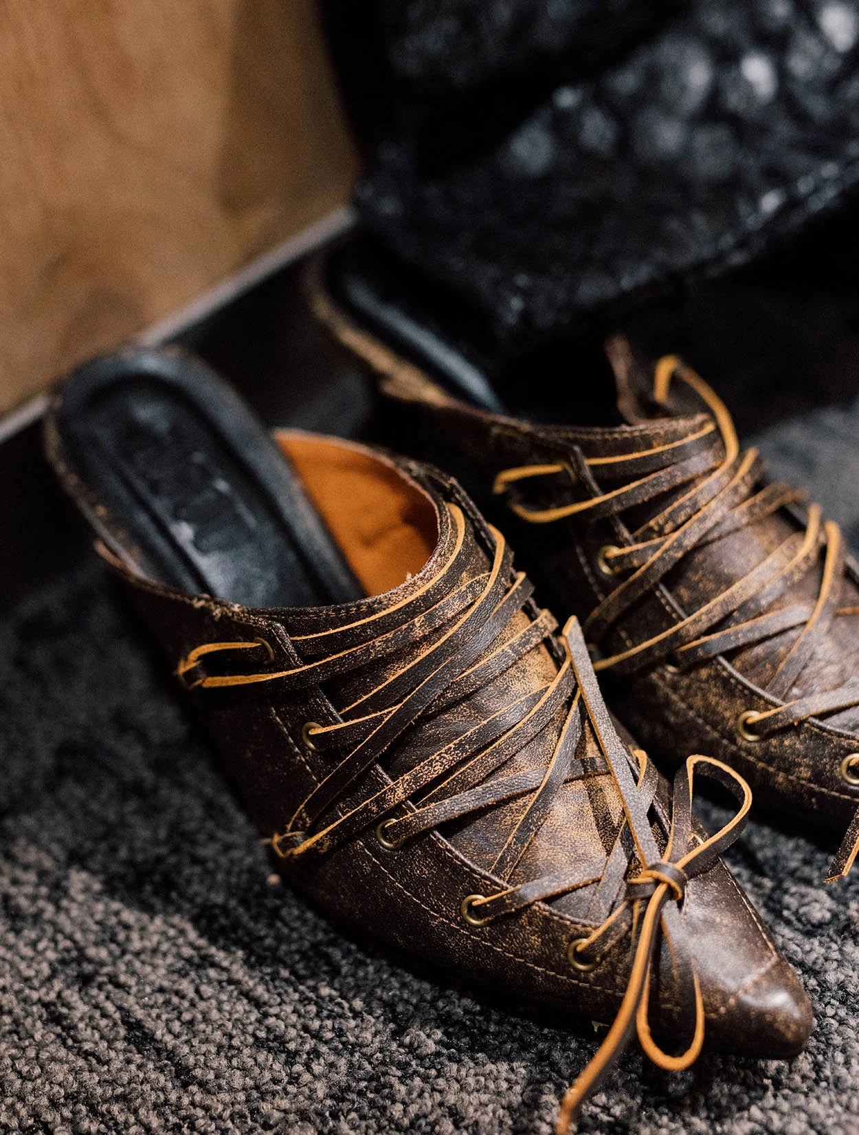 Distinción y carácter. Zapatos de piel con acabado vintage y cordones frontales. Ideales para un atuendo sofisticado y con personalidad.